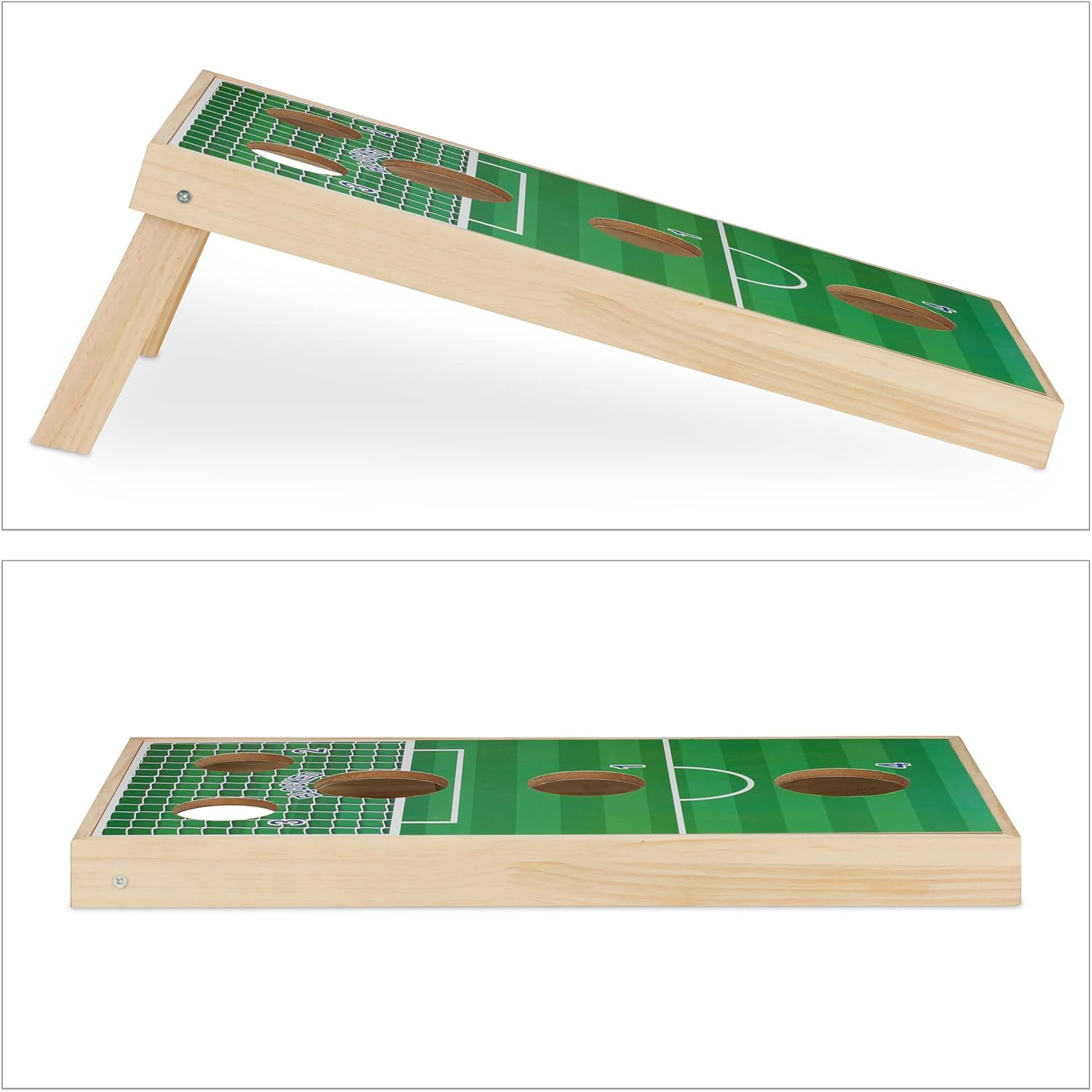 Dieses farbenfrohe Geschicklichkeitsspiel sorgt bei Kindern und Erwachsenen gleichermaßen für großen Freizeitspaß. Zwei Teams treten gegeneinander an und versuchen, mit bunten Wurfsäckchen die fünf Löcher des Spielbretts zu treffen, um Punkte zu sammeln. Das doppelseitige Design mit Eishockey- und Fußballfeldern bietet gleich doppelt so viel Abwechslung und ist im Handumdrehen aufgebaut. Ob drinnen im Kinderzimmer, im Jugendhaus oder draußen im Garten – das Bohnensackspiel sorgt überall für fröhliche Wettkämpfe und gute Laune. Im Set enthalten sind zehn Sandsäckchen, und mit einer Größe von etwa 18 x 29 x 58 cm ist das Spiel perfekt für Partys, Geburtstage und gemeinsame Spielnachmittage geeignet.