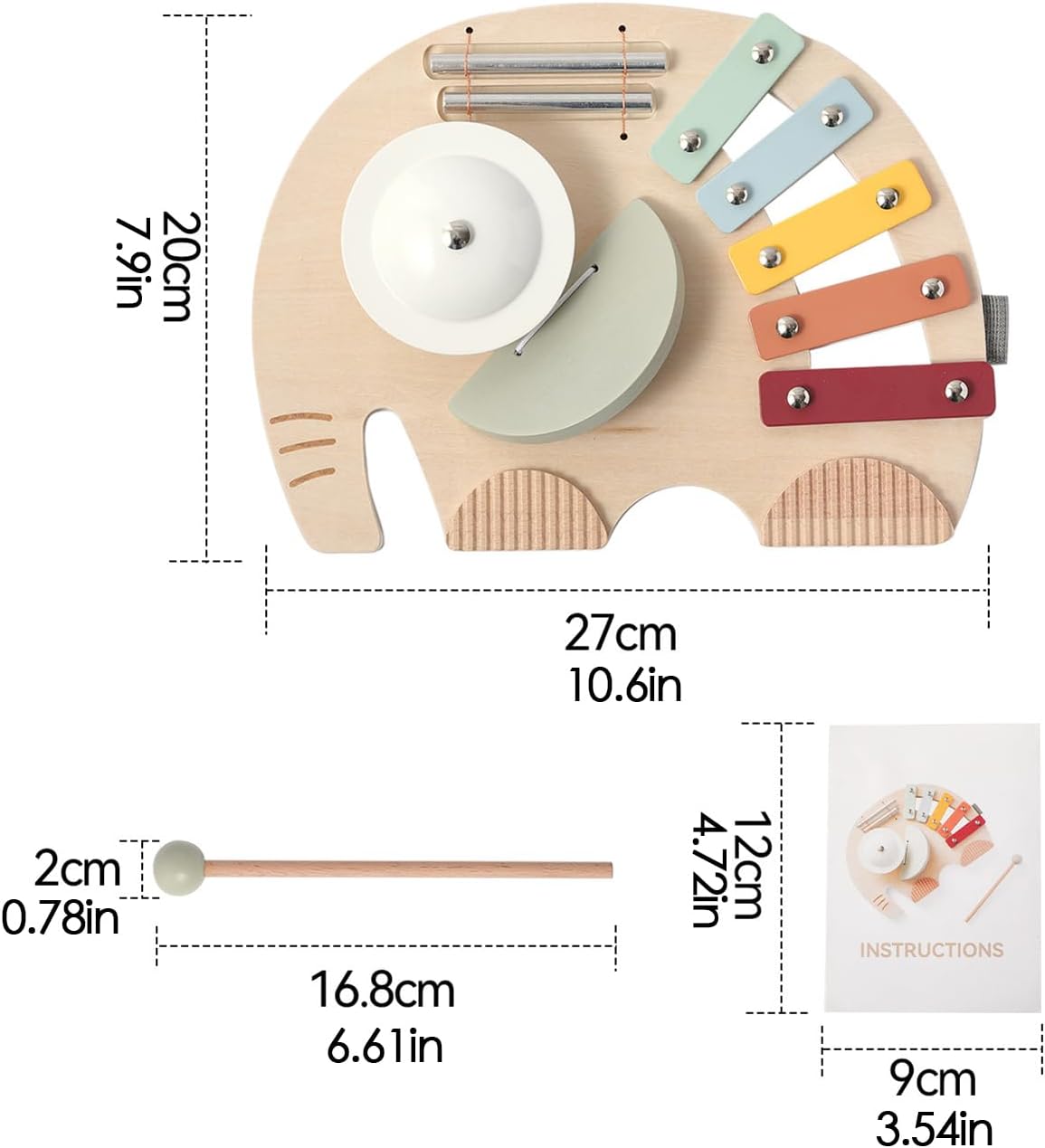 Dieses Xylophon mit Elefantenmotiv führt Kinder spielerisch in die Welt der Musik ein und fördert frühzeitig Rhythmusgefühl und Gehirnentwicklung. Das 5-Noten-Xylophon bietet mit vier verschiedenen Klängen ein abwechslungsreiches Musikerlebnis, das Kreativität und Hand-Augen-Koordination stärkt. Gefertigt aus robustem Holz und Metall, ist es sicher, langlebig und ideal für kleine Hände. Mit seiner kompakten Größe von 27 x 20 cm passt es perfekt in jedes Spiel- oder Kinderzimmer und sorgt für musikalischen Spaß beim Lernen.