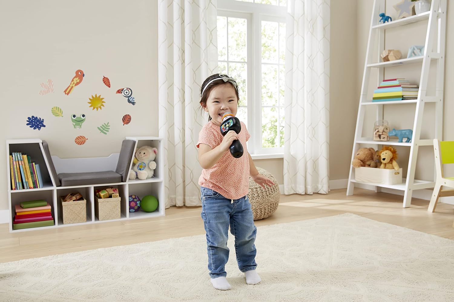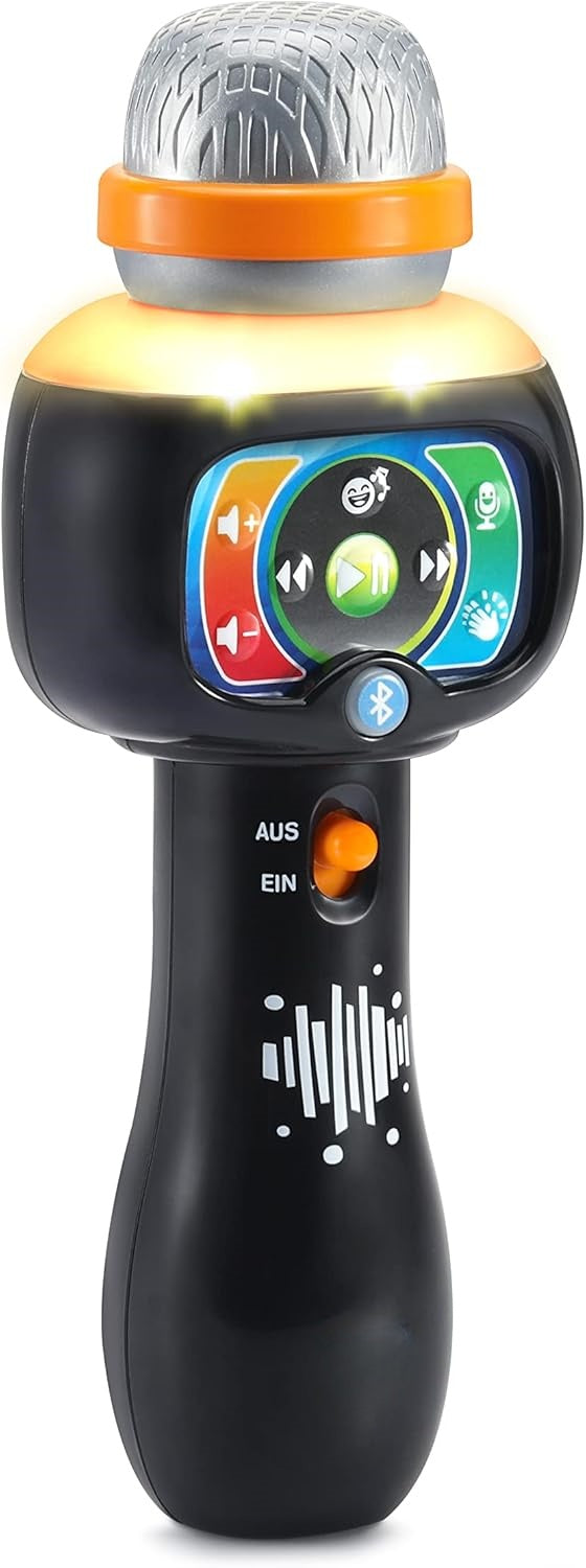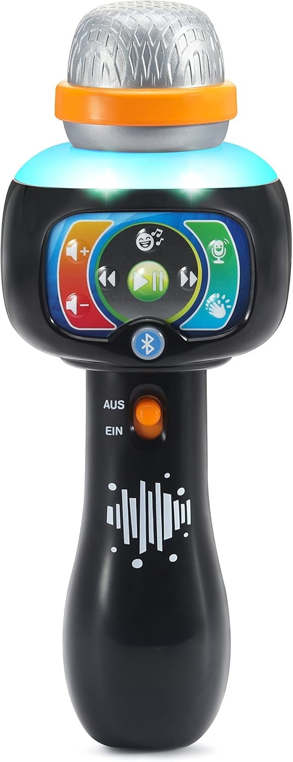 Das singende Sound-Mikrofon ist ein interaktives Musikspielzeug, das über Bluetooth mit externen Geräten verbunden werden kann. Es bietet 15 integrierte Lieder, die mit oder ohne Gesang gesungen werden können, sowie einen Stimmwechsler für lustige Effekte. Mehrfarbige Lichter begleiten die Songs, und über die Applaus-Sound-Taste erhalten kleine Darsteller begeistertes Feedback. Weitere Bedienelemente wie Lautstärke, Wiedergabe, Pause und Überspringen machen das Spielen komfortabel. Das Mikrofon ist ein perfektes Geschenk, um spielerisch auditive Fähigkeiten zu fördern und stundenlangen Spaß zu bieten.